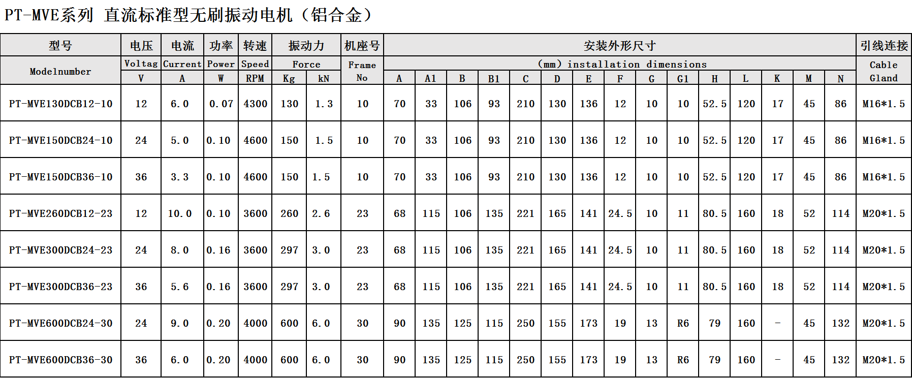 PT-MVE直流無刷鋁合金振動電機