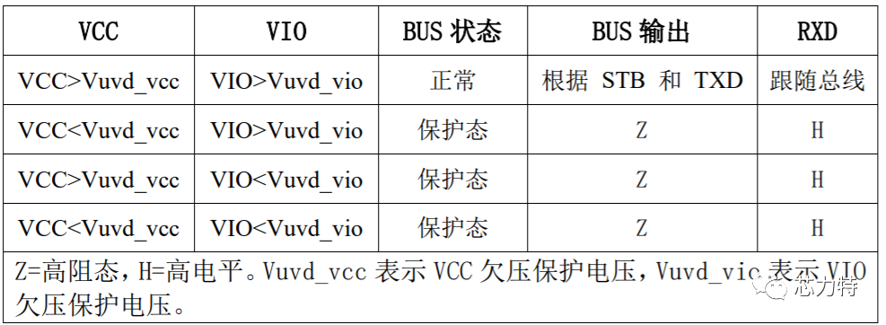只要VCC和VIO其中有一個電壓輸出低于其欠壓保護電壓,芯片CANH、CANL就輸出高阻狀態(tài),此時不影響總線。