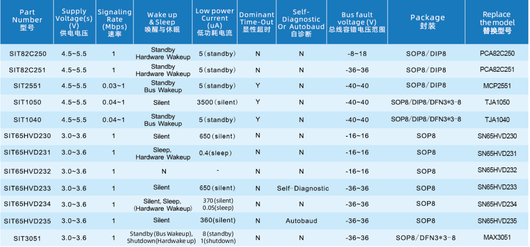 芯力特自主研發(fā)SIT1044芯片是一款應(yīng)用于CAN協(xié)議控制器和物理總線之間的高性能(CAN FD)收發(fā)器芯片,可應(yīng)用于卡車、公交、小汽車、工業(yè)控制等領(lǐng)域,總線耐壓達(dá)到±40V,支持5Mbps(CAN FD)靈活數(shù)據(jù)速率,具有在總線與CAN協(xié)議控制器之間進(jìn)行差分信號(hào)傳輸?shù)哪芰?amp;hellip;…