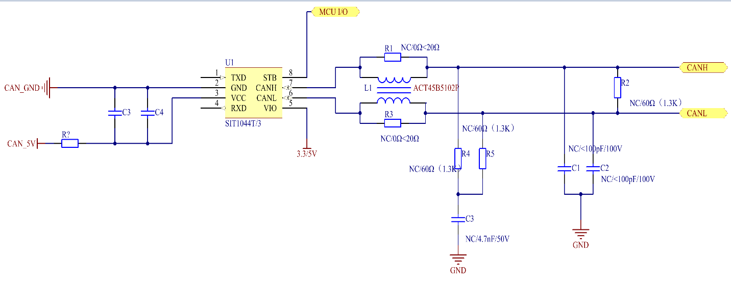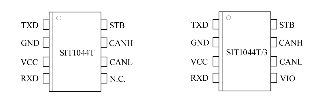 • SIT1044T/3型號(hào)I/O電壓范圍支持3.3V和5V MCU;