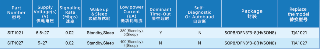三、芯力特LIN系列型號(hào)如下:
